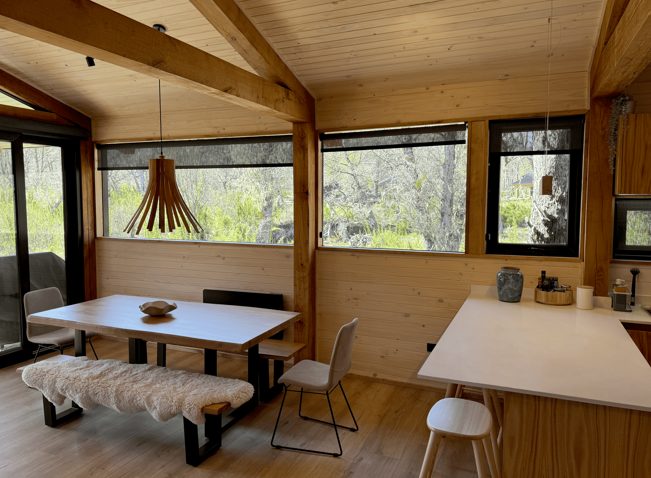 El proyecto busca una arquitectura cálida y honesta, en permanente diálogo con el paisaje y coherente con las condiciones geográficas y ambientales del lugar, mediante sus estructuras de madera, líneas simples y uso de materiales nobles que favorecen la integración con el entorno natural.