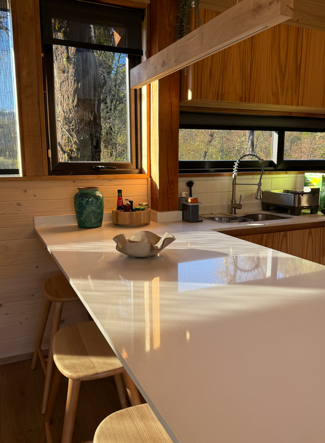 El proyecto busca una arquitectura cálida y honesta, en permanente diálogo con el paisaje y coherente con las condiciones geográficas y ambientales del lugar, mediante sus estructuras de madera, líneas simples y uso de materiales nobles que favorecen la integración con el entorno natural.